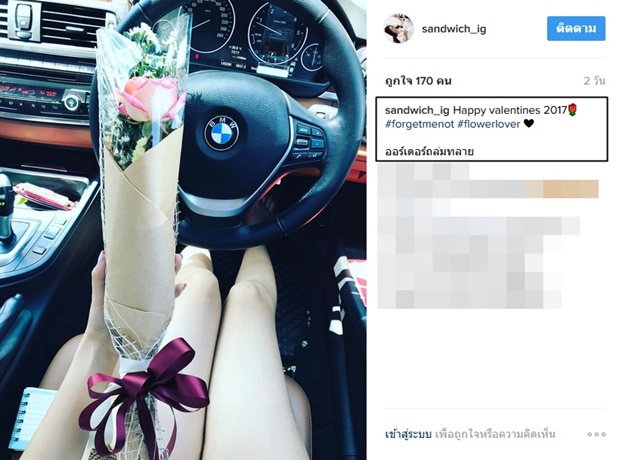 โดยหนุ่มเสกได้ลงรูปผู้หญิงถือดอกกุหลาบอยู่บนรถ พร้อมกับข้อความว่า "ดอกไม้ให้คุณ" ทางด้านสาวแซนวิชก็ลงรูปเดียวกันกับหนุ่มเสก ระบุข้อความว่า “Happy valentines 2017”