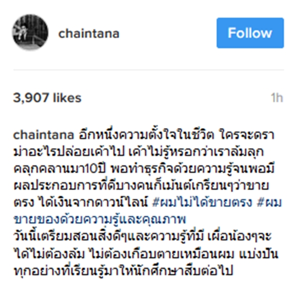 และล่าสุด (2 มีนาคม 2560) เจ้าตัวก็ถึงกับอดรนทนไม่ไหว ระบายความในใจว่า ตนเป็นคนที่ทำงาน ล้มลุกคลุกคลานสร้างธุรกิจมานับ 10 ปี แต่กลับมีคนคอมเมนต์เกรียน ๆ ว่าตนขายตรงและหาเงินจากดาวน์ไลน์ วันที่ตนไม่มีข้าวกินมีใครมาอดอยากด้วยกันบ้าง พอได้เริ่มต้นลืมตาอ้าปากก็มีคนดราม่ากันแล้ว ตอนทำบุญก็มีคนหาว่าสร้างภาพ พอไม่ทำบุญก็บอกว่าเอาเงินไปทำบุญเถอะ