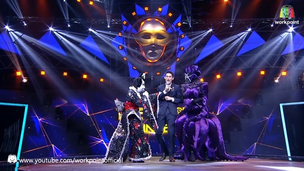 แต่เดี๋ยวก่อน... !! ไม่ใช่แค่บรรดาหน้ากากสาว ๆ เท่านั้น เพราะหน้ากากหนุ่ม ๆ อย่าง หน้ากากทุเรียน ก็เนียนไปกับเขาด้วย มีจับมือพิธีกรมาจุ๊บ จนหนุ่มกันต์ออกอาการเขิน พร้อมบอกว่า "บ้า... เป็นก็ไม่บอก" ทำเอาแฟน ๆ จิ้นกันกระจาย