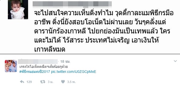 แต่ดูเหมือนว่าเรื่องราวในครั้งนี้จะไม่จบลงง่าย ๆ เพราะในทวิตเตอร์ยังมีการพูดถึงเรื่องนี้อยู่ตลอด ๆ อย่างล่าสุด (13 เมษายน 2560) แฟนคลับเกาหลีบางคนถึงกับงัดผลสอบและเกียรตินิยมมาตอกกลับดราม่าดังกล่าว ที่มีคนเหยียดเรื่องผลการเรียนของแฟนคลับเกาหลีซึ่งผลสอบแต่ละคนนั้นอยู่ในเกณฑ์ที่ดีมาก ๆ บางคนได้คะแนนเต็ม 100 ก็มี
