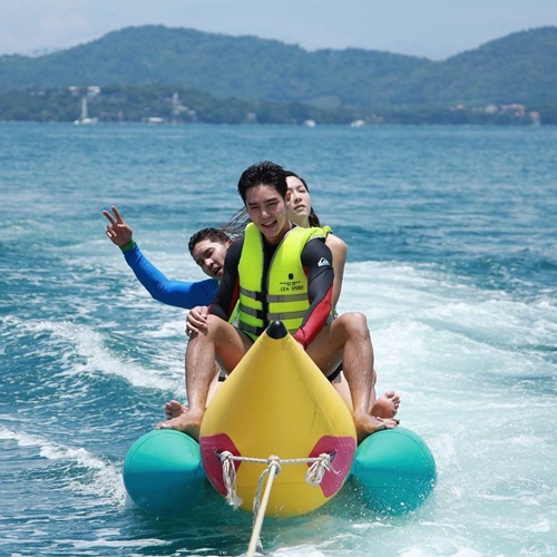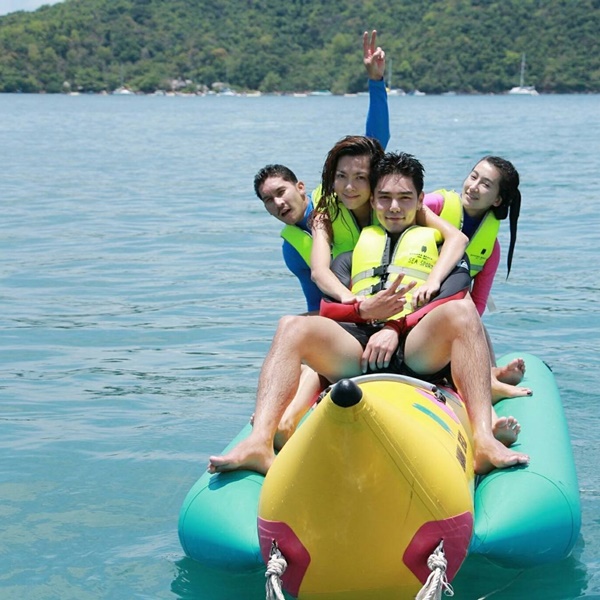 ต้องบอกเลยว่าทริปนี้มีแต่รอยยิ้มและเสียงหัวเราะ เพราะทั้งคู่ได้ใช้เวลาอยู่ร่วมกัน แถมพากันเล่นน้ำ และเล่นบานาน่าโบ๊ท อย่างสนุกเฮฮา