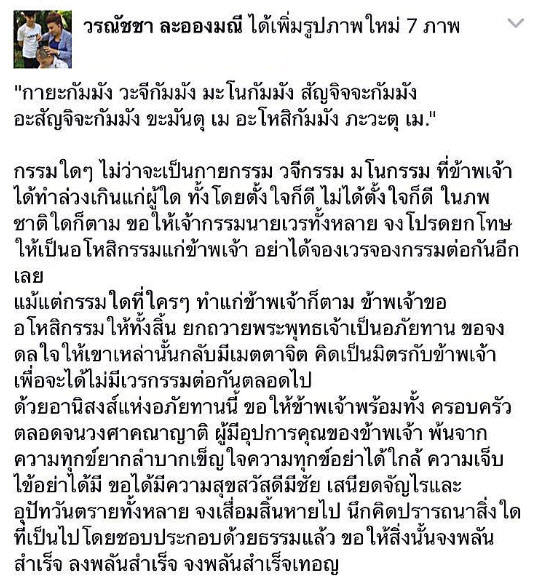 แม่ก้อย โพสต์ข้อความว่า การบวชครั้งนี้ เพื่อขออโหสิกรรมกับเจ้ากรรมนายเวร และยกถวายพระพุทธเจ้าเป็นอภัยทาน อีกทั้งยังเป็นการบวชสร้างบุญบารมี ขอให้ครอบครัวมีความสุขอีกด้วย