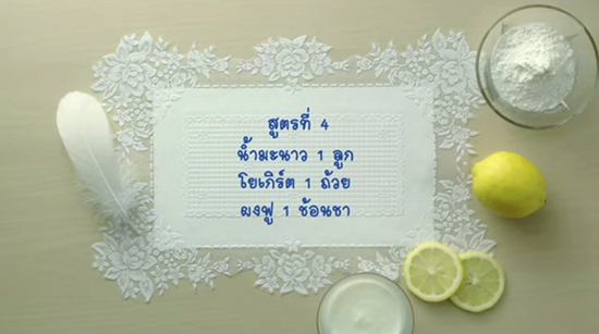 สูตรที่ 4 น้ำมะนาว 1 ลูก โยเกิร์ต 1 ถ้วย และผงฟู 1 ช้อนชา
