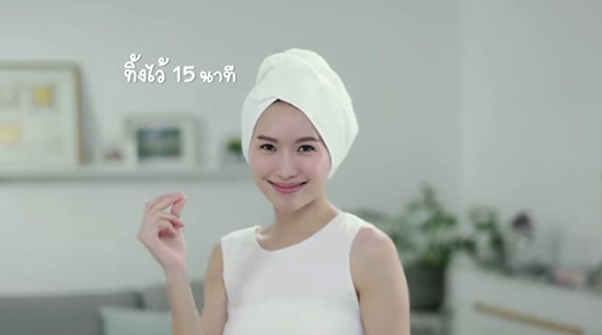 2. นำครีมหมักผมที่ได้มาทาให้ทั่วเส้นผม นวดเบา ๆ