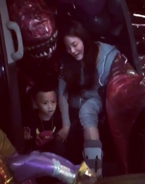 ซึ่งเมื่อ น้องบีน่า น้องบรู๊คลิน เดินมาถึงรถก็ดีใจสุด ๆ เพราะน้าเจนี่ เตรียมลูกโป่งไว้รอต้อนรับเพียบ มีทั้งลูกโป่งสีสันสดใส ลูกโป่งรูปไดโนเสาร์ แถมน้าเจนี่ที่เข้าเฝือกยังดูเหมือนใส่ขาแบบหุ่นยนต์ซะด้วย น้องบรู๊คลินถึงกับร้องว้าวเลย