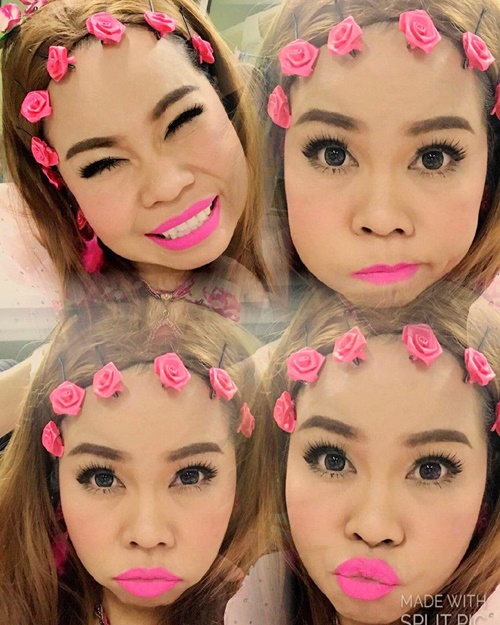 โดยสาวตุ๊กกี้ ได้โพสต์ภาพสลัดลุคตลกสาวสุดฮา แต่งตัวหนักหน่วงชวนขำ ขอเปลี่ยนลุคกลายเป็นสาวฟรุ้งฟริ้ง ติดกิ๊บรูปดอกกุหลาบสีชมพู ทาปากสีชมพู หวานเจี๊ยบเลย