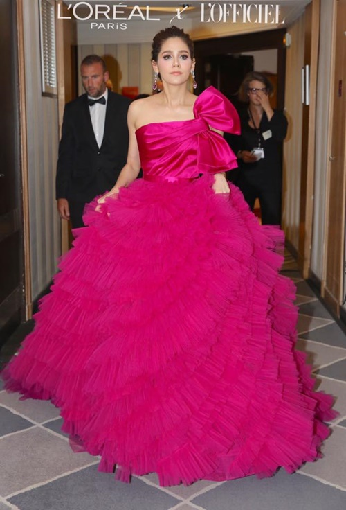 มาถึงวันที่ 3 ของการเดินพรมแดงในงานเทศกาลภาพยนตร์นานาชาติเมืองคานส์ 2017 แล้ว โดยในวันนี้ (20 พฤษภาคม 2560) คุณแม่ลูกแฝดของเรา ชมพู่ อารยา มาในลุคหวาน ๆ สวมชุดกระโปรงเปิดไหล่เฉียงสีชมพูฟูฟ่อง เสริมด้วยโบใหญ่ จากแบรนด์ Zuhair Murad Couture Spring/Summer 2017 เกล้าผมเก็บอย่างสวยงาม แต่งหน้าสไตล์สาวหวาน