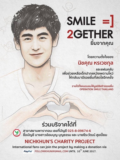 นิชคุณ 2PM น้ำใจงาม ร่วมกับแฟนคลับบริจาคเงินช่วยผ่าตัดปากแหว่งเพดานโหว่ให้กับเด็ก ๆ ได้ยอดเงิน 1.4 ล้าน ซุปตาร์หนุ่มสมทบเงินเพิ่มอีก 1 เท่า รวม 2.8 ล้านบาท
