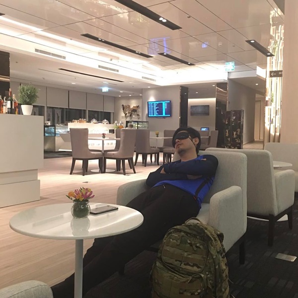 แบบไม่ต้องหาอะไรมารองมีแค่ที่ปิดตากับกระเป๋าแทนหมอนก็สามารถหลับได้แล้ว