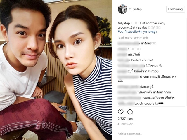 ทางด้านหนุ่ม ตุลย์ ตุลยเทพ ก็ลงรูปคู่พร้อมแคปชั่นว่า "Just another rainy gloomy...Sat เธอ day #ourfirstwefie #myนางพญา" เปิดตัวชัดแบบนี้ เชื่อว่าต่อไปแฟน ๆ คงได้เห็นภาพหวานกันอีกเพียบแน่นอน !!