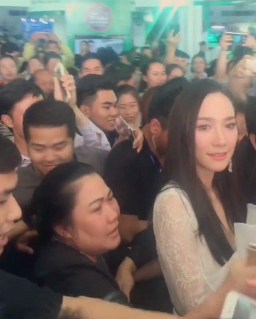 โดยในคลิปเผยให้เห็นภาพฝูงชนแฟนคลับกำลังเดินตามถ่ายรูปอั้มเยอะสุด ๆ