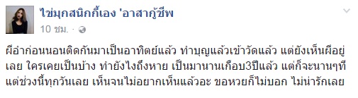 เป็นอีกหนึ่งเรื่องเล่าชวนขนลุก กับประสบการณ์หลอน ๆ ของคนในวงการบันเทิง อย่างสาว ไข่มุก เดอะวอยซ์ ที่ล่าสุด (14 มิถุนายน 2560) ได้โพสต์บอกเล่าเรื่องราวการถูก "ผีอำ" ติดต่อกัน พร้อมขอความช่วยเหลือจากแฟน ๆ ดังนี้