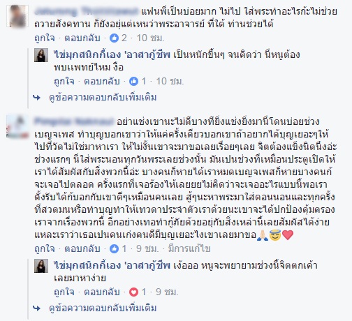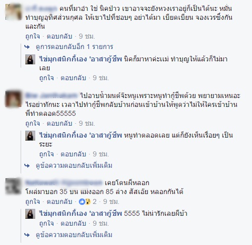 งานนี้ก็มีหลายคนเข้ามาร่วมแชร์ประสบการณ์การถูกผีอำ พร้อมให้คำแนะนำกันเพียบ ซึ่งสาวไข่มุก ก็ได้ตอบผ่านคอมเมนต์หนึ่งด้วยว่า "เป็นหนักขึ้น ๆ จนคิดว่า นี่หนูต้องพบแพทย์ไหม งือ"