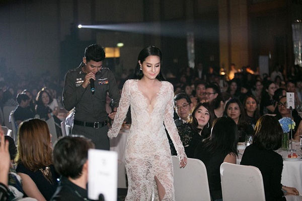 แต่งานนี้ที่หลายคนโฟกัสมากกว่าเรื่องชุดซีทรูก็คงจะเป็นภาพที่เจ้าตัวลง