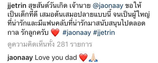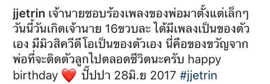 ซึ่งคุณพ่อเจ ก็ไม่พลาดที่จะโพสต์อวยพรวันเกิดลูกชายสุดที่รักด้วยว่า