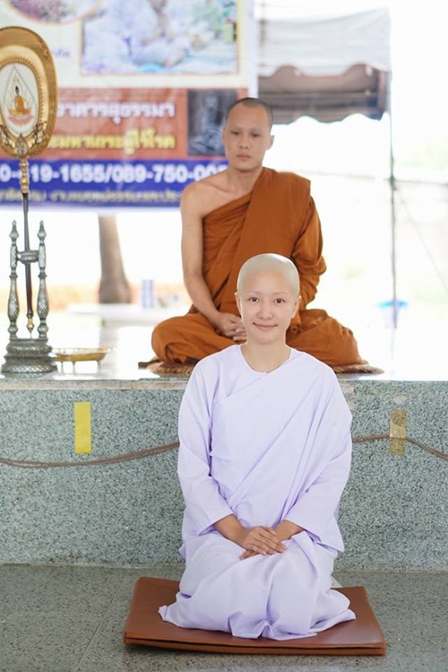 พริตตี้เงินล้าน ที่เธอขอหันหลังให้ทางโลก เดินหน้ามุ่งสู่สายบุญ เข้าวัดโกนผมบวชชี เมื่อวันที่ 26 มิถุนายน 2560 ณ วัดตรีวิสุทธิธรรม ต.สระกระโจม อ.ดอนเจดีย์ จ.สุพรรณบุรี เพื่อทดแทนพระคุณพ่อแม่