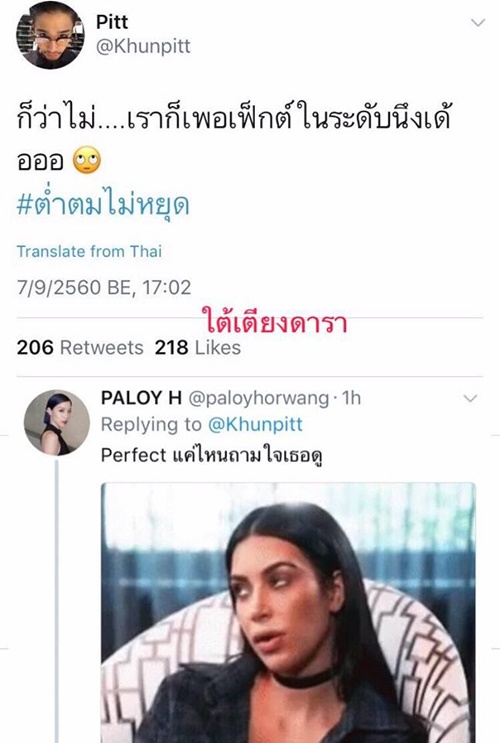 มีประเด็นให้ขาเผือกขาเม้าท์ได้ติดตามกันอีกแล้วค่า กับแฮชแท็กเด็ดมาแรง #ต่ำตมไม่หยุด เมื่อล่าสุด (9 กรกฎาคม 2560) นักร้อง-นักแสดงหนุ่ม พิชญ์ กาไชย โพสต์ในทวิตเตอร์ โดยมีข้อความว่า "ก็ว่าไม่....เราก็เพอร์เฟคท์ในระดับนึงเด้อ (อีโมมองบน) #ต่ำตมไม่หยุด"