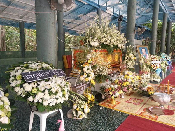 โดยงานสวดพระอภิธรรมศพของป้าติ่ง จัดขึ้นอย่างเรียบง่ายที่วัดป่าธรรมอุทยาน จ.ขอนแก่น ซึ่งเป็นสถานที่ที่ป้าติ่งไปทำบุญ รวมไปถึงปฏิบัติธรรมบ่อย ๆ ทั้งนี้มีคนในวงการบันเทิงส่งพวงหรีดมาร่วมไว้อาลัยมากมาย อาทิ ตุ๊ก ดวงตา, กระแต ศุภักษร, ต่าย เพ็ญพักตร์ ทางด้านพิธีฌาปนกิจจะจัดขึ้นในวันที่ 16 กรกฎาคม 2560