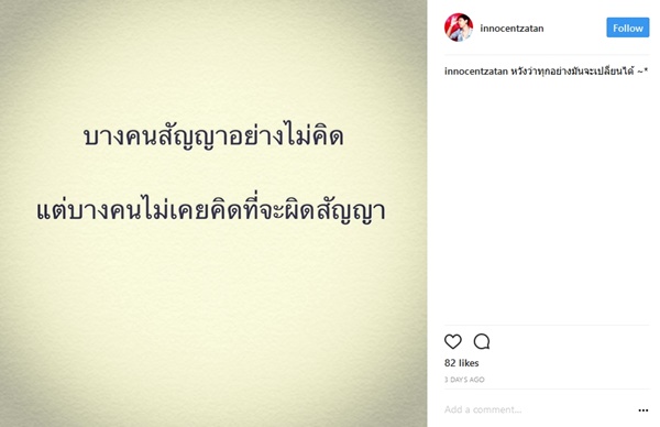 โดยสาวชมพู่ ก่อนบ่าย เล่ารายละเอียดว่า เขาไม่อยู่ ลงใต้ อยู่ต่างจังหวัดคงไม่มีอะไรทำ พอเราหายนิดหน่อยเขาก็ถามว่าอยู่ไหน พอผิดปกตินิดหนึ่งก็โดนดุเป็นเรื่องเป็นราว งอนบอกว่าตนผิดสัญญา คือตนเจอเพื่อนเยอะไปหน่อย ไม่ยอมอยู่บ้าน พักผ่อน เดี๋ยวก็เป็นลมวูบไปอีก แต่ตอนนี้ก็เคลียร์แล้ว ตนก็ขอโทษไป เขาก็บอกว่าที่โมโหก็เพราะเป็นห่วงไม่อยากเสียไป พอเขาเป็นแบบนี้ก็รู้สึกดี อย่างน้อยก็ได้รู้ว่ามีคนเป็นห่วง