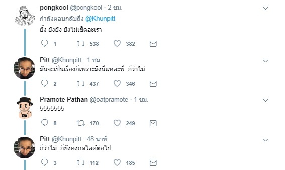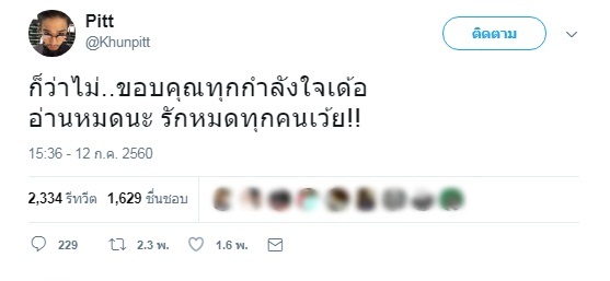 ล่าสุด (12 กรกฎาคม 2560) พิชญ์ กาไชย ก็ได้ออกมาเคลื่อนไหวหลังมีดราม่า #ต่ำตมไม่หยุด โดยโพสต์ข้อความผ่านทวิตเตอร์ @Khunpitt ว่า "ก็ว่าไม่..ขอบคุณทุกกำลังใจเด้อ อ่านหมดนะ รักหมดทุกคนเว้ย !!" ซึ่งก็มีพี่ ๆ คนสนิทอย่าง ป๊อป ปองกูล และ โอ๊ต ปราโมทย์ เข้ามาร่วมแซว