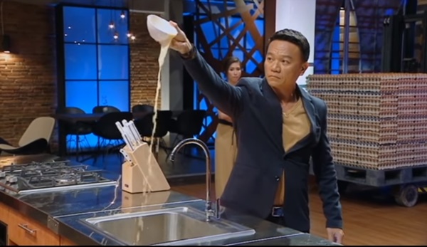 หนุ่มแบงค์ได้ตอกไข่ลงไปในน้ำ ซึ่งเชฟเอียน หนึ่งในกรรมการ ระบุว่า