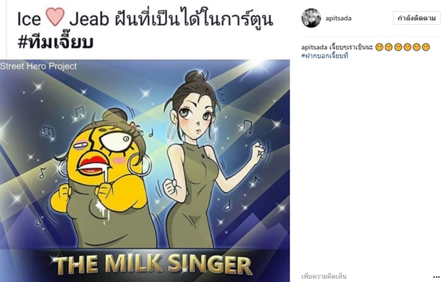ไอซ์ อภิษฎา โพสต์ภาพการ์ตูนเต้นคู่แอดมินเพจดัง อีเจี๊ยบ เลียบด่วน ก่อนฝากข้อความถึงบอกเราเขินนะ