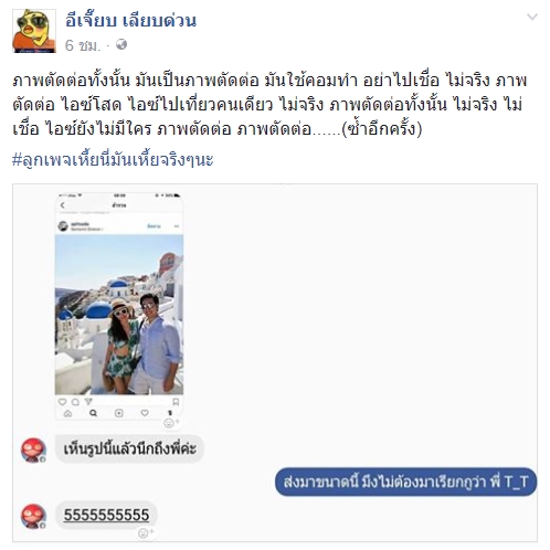 เรียกว่าเป็นแฟนคลับตัวยงของนักแสดงสาวสุดเซ็กซี่ ไอซ์ อภิษฎา เลยก็ว่าได้ สำหรับเพจดัง อีเจี๊ยบ เลียบด่วน ที่ช่วงที่กำลังเฮิร์ตอย่างแรง เมื่อเห็นภาพของสาวไอซ์ ที่ควงหวานใจ ไฮโซแม็กซ์ บินไปสวีทกันถึงที่ซานโตรินี กรีซ จนแอดมินเพจดังถึงกับโพสต์รัว ๆ ทำเอาแฟนเพจขำกลิ้ง