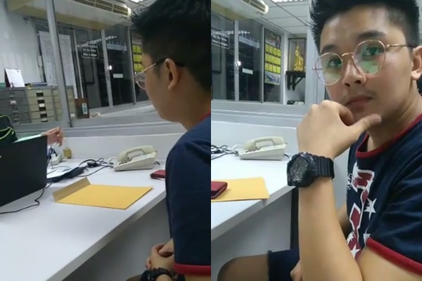 ที่สถานีตำรวจ พร้อมแคปชั่นว่า
