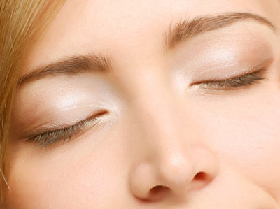 สำหรับดวงตา ใช้ปลายนิ้วแตะอายแชโดว์สีขาวหรือสีมุกไล้บาง ๆ ทั่วเปลือกตา แล้วลงอายแชโดว์แบบสีโทนสว่าง ๆ อย่างพีชหรือชมพูบริเวณใต้รอยพับเปลือกตา ลองเลือกแบบสีอ่อนแต่มีชิมเมอร์วิ๊ง ๆ ก็จะดูแบ๊ว ๆ ใส ๆ ดีค่ะ