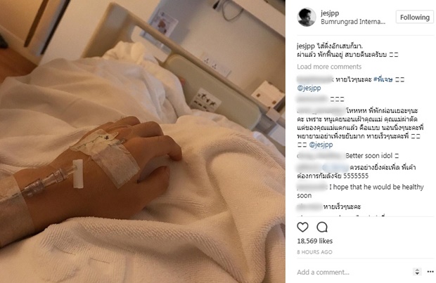 โดยหนุ่มเจษ อัปเดตอาการว่า "ไส้ติ่งอักเสบก็มา ผ่าแล้ว พักฟื้นอยู่ สบายดีนะครับบ"