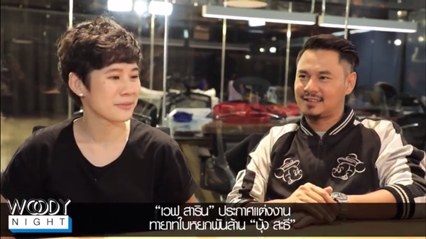 หลังจากที่นักแสดงหนุ่มเวฟ สาริน ได้ออกมาประกาศแต่งงานกับ บุ้ง สะธี ทายาทตึกใบหยก ทั้งที่ฝ่ายหญิงมีท่าทางแมน ๆ คล้ายผู้ชาย ซ้ำร้ายยังมีคนเม้าท์ว่า หนุ่มเวฟแต่งงานกับฝ่ายหญิงเพราะหวังเงิน ถึงขนาดบอกว่าหนุ่มเวฟตกถังข้าวสารกันเลยทีเดียว