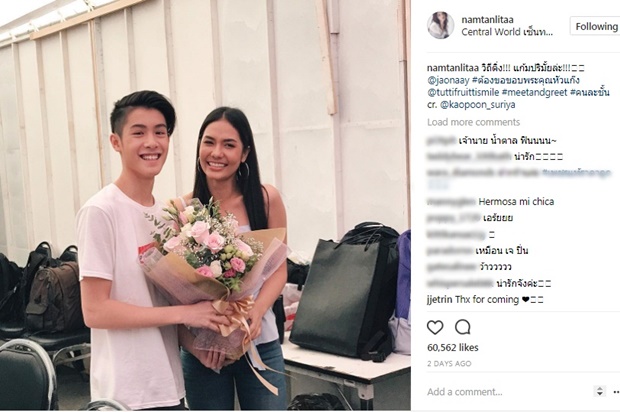 โดยความฮอตของน้องเจ้านายนั้น ยังทำเอานางงามสาว น้ำตาล ชลิตา MUT2016 ถึงกับประกาศตัวเป็นติ่ง ซึ่งในงานมีทติ้งที่ผ่านมา น้ำตาล ก็ได้หอบช่อดอกไม้ไปร่วมแสดงความยินดีกับ น้องเจ้านาย พร้อมแคปชั่นว่า "วิถีติ่ง !!! แก้มปริมั้ยล่ะ !!!"