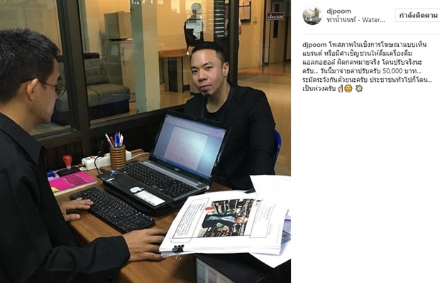 ก่อนจะงานเข้าอย่างจังในเวลาถัดมา เพราะในวันนี้ (23 สิงหาคม 2560) ดีเจภูมิ ได้โพสต์ภาพขณะเข้าพบเจ้าหน้าที่ตำรวจ พร้อมข้อความว่า "โพสต์ภาพในเชิงการโฆษณาแบบเห็นแบรนด์ หรือมีคำเชิญชวนให้ดื่มเครื่องดื่มแอลกอฮอล์ ผิดกดหมายจริง โดนปรับจริงนะครับ... วันนี้มาจ่ายค่าปรับครับ 50,000 บาท... ระมัดระวังกันด้วยนะครับ ประชาชนทั่วไปก็โดน... เป็นห่วงครับ ปิดคดีครับ... หลังจากนี้จะระมัดระวังนะครับ"