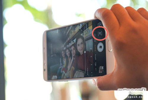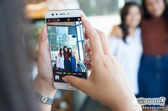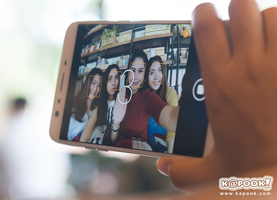 และนอกจากจะถ่ายเซลฟี่คนเดียวได้สวยสุด ๆ แล้ว ไฮไลท์ของมือถือรุ่นนี้จะอยู่ตรงที่โหมดถ่ายเซลฟี่เป็นกลุ่มนี่แหละ เห็นไหมคะว่าพอเลือกที่ไอคอน groupfie แล้วมุมภาพจะกว้างขึ้นทันที ทีนี้ต่อให้จะเซลฟี่กับแก๊งเพื่อน ๆ หลายคนแค่ไหน ก็ไม่ต้องกลัวว่าจะล้นเฟรม หรือเก็บภาพเพื่อน ๆ ไม่หมดแล้วล่ะค่ะ นอกจากนี้เวลาถ่ายภาพสาว ๆ ยังไม่ต้องคอยกดปุ่มชัตเตอร์เองอีกด้วย เพราะสามารถตั้งค่าการถ่ายได้หลากหลายแบบเลยทีเดียว ไม่ว่าจะเป็น แตะหน้าจอ, ใช้เสียง, ท่าทาง หรือแม้แต่ตั้งเวลาถ่ายก็สามารถเลือกได้ตามสะดวกเลยค่ะ