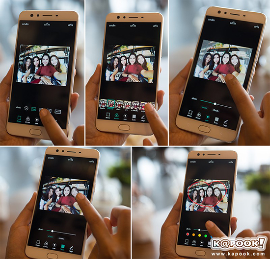 ทั้งนี้ถ่ายเสร็จแล้วก็ยังสามารถแก้ไขรูปได้ทันที เพียงแค่เลือกที่เมนูแก้ไข ซึ่งภายในเมนูก็จะมีเมนูย่อยให้เลือกอีกมากมาย ทั้งสามารถหมุนภาพได้ เลือกขนาดของภาพได้ หรือจะใส่ฟิลเตอร์แต่งภาพให้สวย ๆ ปรับความเบลอของฉากหลัง รวมไปถึงทำภาพโมเสก หรือแม้แต่จะใช้นิ้ววาดรูปลงไปเลยก็ยังได้ เจ๋งสุด ๆ ไปเลยใช่ไหมล่ะคะ เรียกได้ว่าไม่ต้องไปใช้หลาย ๆ แอปฯ แต่งรูปให้เสียเวลากันเลยล่ะ และเมื่อแต่งรูปเสร็จแล้วสาว ๆ ก็สามารถเลือกแชร์ไปยังโซเชียลได้ทันทีอีกด้วย งานนี้สะดวกสุด ๆ ไปเลย...