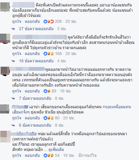 ล่าสุด (9 ตุลาคม 2560) ทางด้านเสก โลโซ ก็ได้แชร์รายการโหนกระแสลงในเฟซบุ๊กส่วนตัว และเมื่อรายการดังกล่าวออกอากาศไปทำให้มีแฟน ๆ เข้าไปถล่มคอมเมนต์ใต้โพสต์ที่หนุ่มเสกแชร์กันยับ ซึ่งมีทั้งบอกว่าอีฟหน้าไม่อายพูดออกมาได้ยังไงว่า ถึงเขามีลูก มีเมียแล้วก็จะรัก และบางคนยังบอกอีกว่า เสกกับอีฟช่างเหมาะสมกันเหลือเกิน เหมือนผีเน่ากับโลงผุ และบางคนยังพาดพิงไปถึงคุณแม่ของสาวอีฟว่าไม่รู้สึกอายบ้างเหรอที่ลูกสาวไปแย่งผัวชาวบ้าน