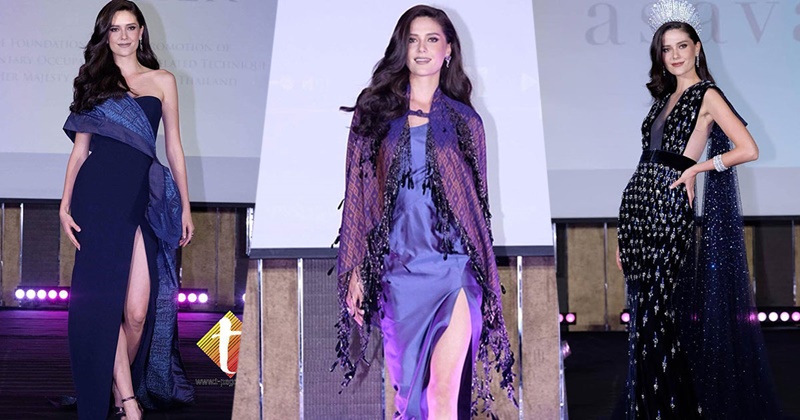 1. ชุดจากแบรนด์ SIRIVANNAVARI : พระเจ้าหลานเธอ พระองค์เจ้าสิริวัณณวรีนารีรัตน์ ทรงพระกรุณาประทานชุดแบรนด์ SIRIVANNAVARI ในคอลเลคชั่นทรงออกแบบพิเศษ ตัดเย็บด้วยผ้าไหมมัดหมี่จากมูลนิธิส่งเสริมศิลปาชีพในสมเด็จพระนางเจ้าสิริกิติ์ พระบรมราชินีนาถ เป็นชุดราตรีสีม่วง ใช้เทคนิคการร้อยและการปักลูกปัดแบบ Haute Couture จากประเทศฝรั่งเศส ปักโดยช่างปักฝีมือชั้นครูของแบรนด์