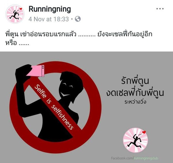 โลกโซเชียลขอความร่วมมือ อย่าเซลฟี่กับ ตูน บอดี้สแลม ขณะวิ่งมาราธอน เพราะเสี่ยงบาดเจ็บหนักกว่าเดิม แนะให้ใช้โหมดวิดีโอ และอย่าลืมส่งเสียงเชียร์ให้กำลังใจ