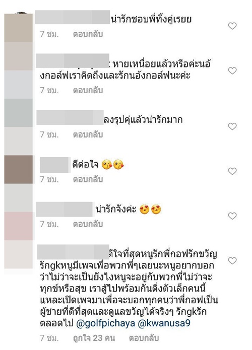 แต่ล่าสุด (14 พฤศจิกายน 2560) แฟน ๆ ของ กอล์ฟ ขวัญ ก็มีอันได้เฮกันแล้วค่ะ เมื่อทั้งหนุ่มกอล์ฟและสาวขวัญ ต่างก็โพสต์รูปคู่ลงใน IG แม้จะเป็นภาพโปรโมทสินค้า แต่ก็ทำเอาแฟนคลับฟินกันหนักมาก ดีใจที่ทั้ง 2 คน กลับมาลงรูปหวานด้วยกันอีกครั้ง