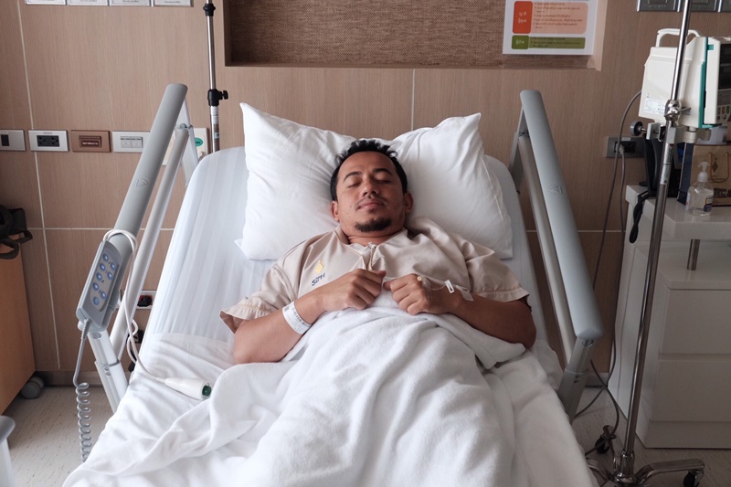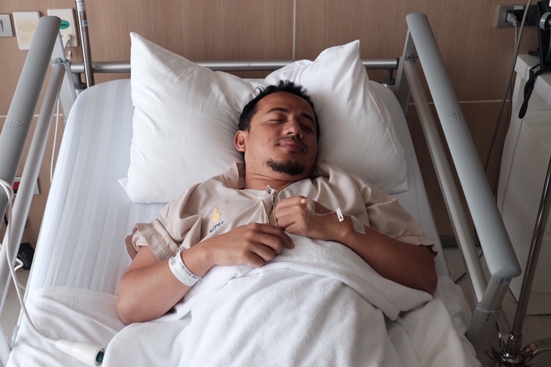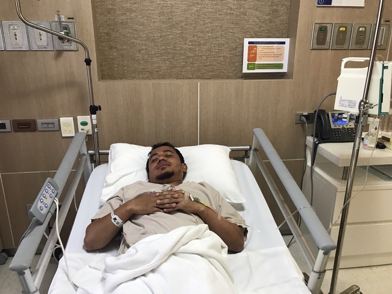 ต้องขอหยุดเนื่องจากไม่ไหวแล้วตีรถกลับบ้านที่ กทม. ทันที และเมื่อวันที่ 14 พฤศจิกายน ตอนบ่ายขณะอยู่ที่บ้านรู้สึกหมดแรง ผู้จัดการส่วนตัวจึงต้องพาส่งโรงพยาบาลศิริราช ปิยมหาราชการุณย์ และแอดมิททันที