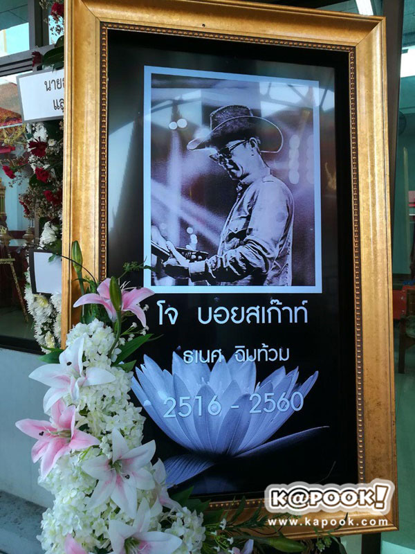 ผ่านพ้นไปเป็นที่เรียบร้อยแล้ว สำหรับพิธีฌาปนกิจ โจ บอยสเก๊าท์ นักร้องนักแสดงวัย 44 ปี ที่เสียชีวิตอย่างกะทันหันด้วยอาการหัวใจวายเฉียบพลัน โดยมีครอบครัว เพื่อน พี่ น้อง ทั้งในและนอกวงการบันเทิง มาร่วมแสดงความอาลัยกันเป็นจำนวนมาก ณ วัดสายไหม ต.คูคต อ.ลำลูกกา จ.ปทุมธานี ในวันที่ 16 พฤศจิกายน 2560
