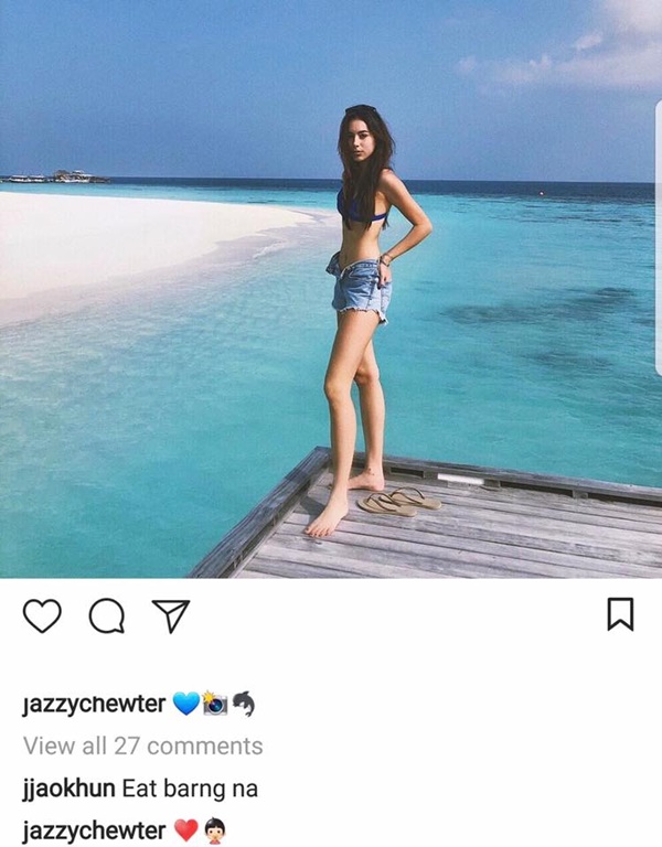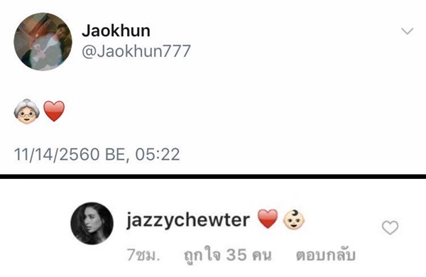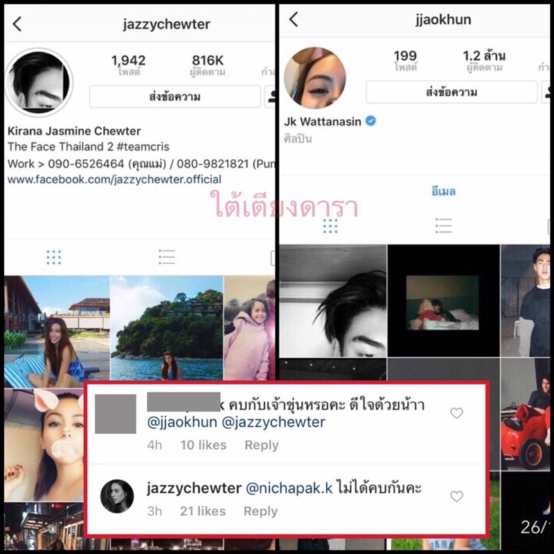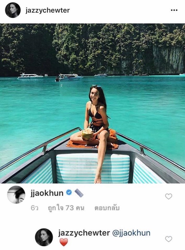 แต่ทางเฟซบุ๊ก ใต้เตียงดารา ก็ได้แคปภาพของสาวเจสซี่ ที่แต่ละภาพมีคอมเมนต์มุ้งมิ้งของน้องเจ้าขุน เอาล่ะสิ ฝ่ายหญิงบอกชัดขนาดนี้แล้ว ฝ่ายชายว่าไงเอ่ย