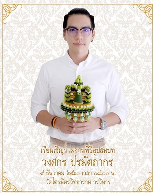 เตรียมเข้าสู่ร่มกาสาวพัสตร์อีกคนแล้ว สำหรับพระเอกหนุ่ม นิว วงศกร ปรมัตถากร ที่ล่าสุด (29 พฤศจิกายน 2560) เจ้าตัวได้ยกพานกราบขอขมาผู้หลักผู้ใหญ่ที่เคารพ เตรียมลาอุปสมบท เพื่อทดแทนบุญคุณบิดา-มารดา