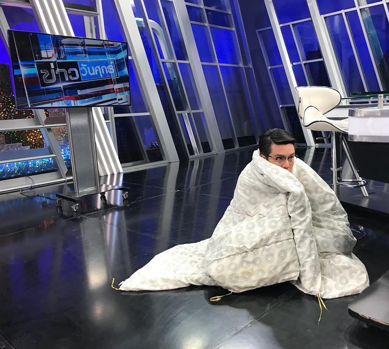 จั๊ด ธีมะ มิติใหม่แห่งการรายงานข่าว ปม ผ้าห่มที่หายไป เลยของัดผ้าห่มจากบ้านมาโชว์กลางรายการ ห่มไปอ่านข่าวไป ก็มันหนาว จะให้ทำไงอะคุณ !