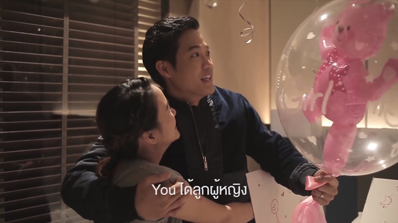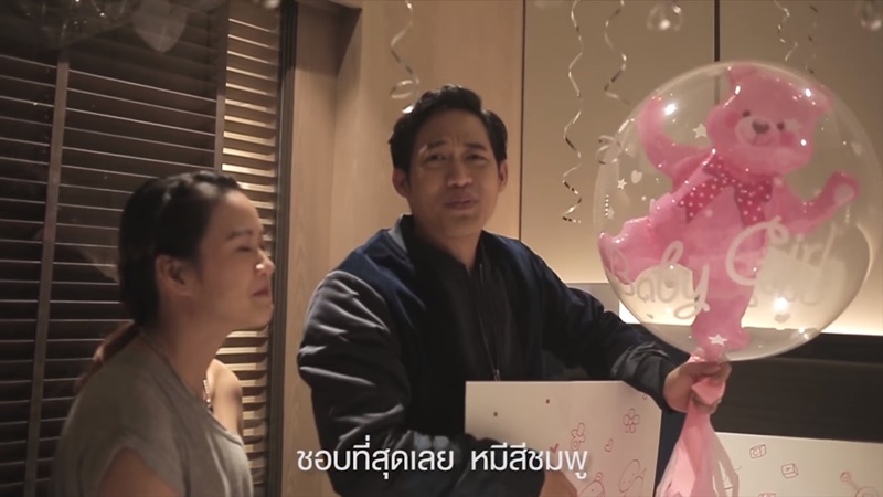 ทั้งนี้ในคลิปดังกล่าว เมื่อ "พี่ตู่" เปิดกล่องของขวัญออกมา ก็เจอกับลูกโป่งรูปหมีสีชมพู ทำเอาเจ้าตัวดีใจสุด ๆ โดยไม่ทันสังเกตข้อความว่า "Baby Girl" ที่เขียนอยู่ จนสาวนุชถึงกับมองบนใส่สามีที่ดีใจเพราะหมี แถมพี่ตู่ยังบอกกับกล้องอีกว่า "ชอบที่สุดเลย หมีสีชมพู" จากนั้นก็หันมากอดขอบคุณภรรยา