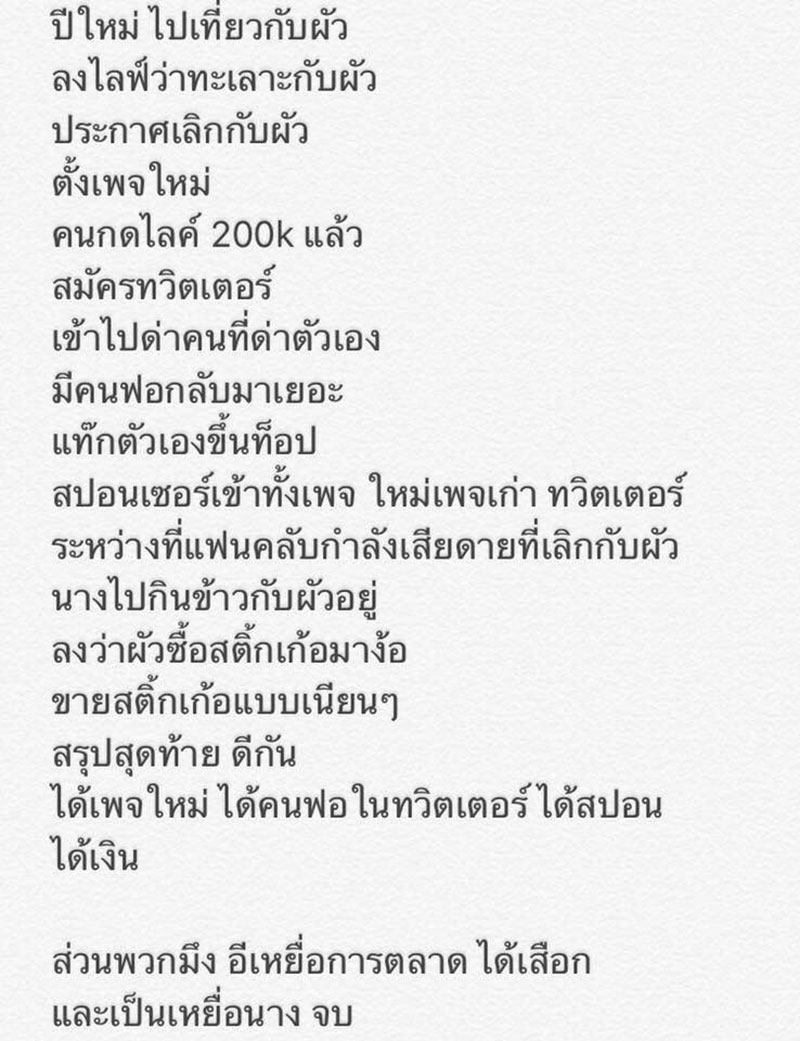 *** ส่วนคนที่ติดตามก็เป็นเหยื่อการตลาด ได้เผือกและเป็นเหยื่อของเส้นด้าย จบ ***