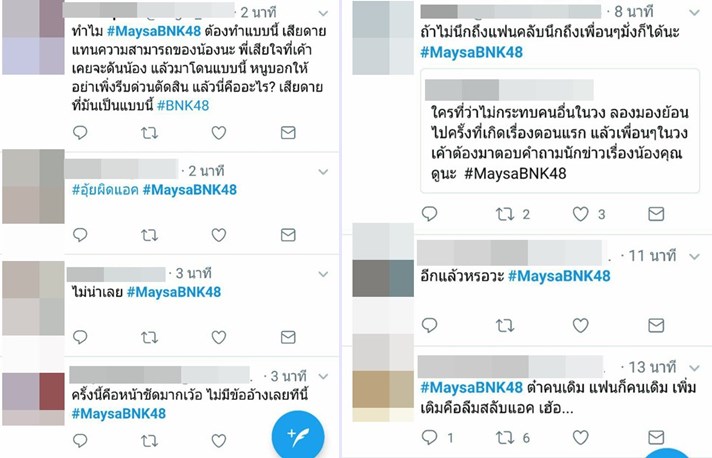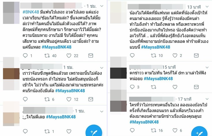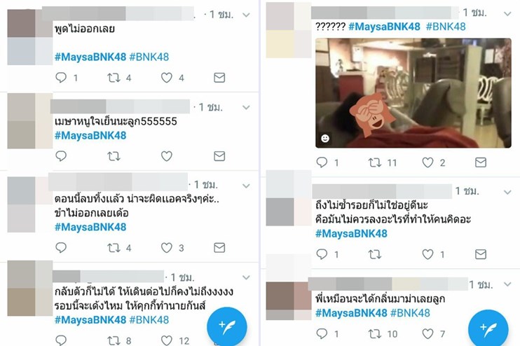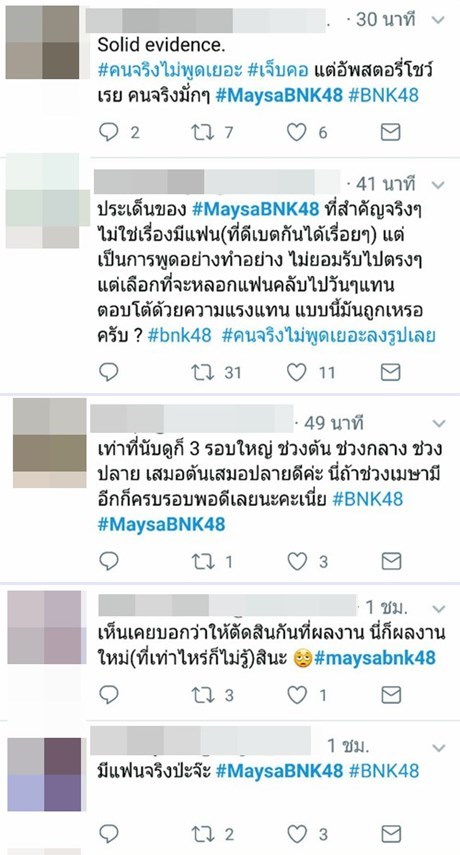 อย่างไรก็ตาม ยังมีคนที่มองว่า หากทางแฟนคลับของ เมษา BNK48 รับได้กับเรื่องนี้ ก็ไม่น่าจะมีปัญหาอะไร ส่วนจะมีการชี้แจงอะไรออกมาจากทางเจ้าตัวหรือไม่ คงต้องรอติดตามกันต่อไปอีกครั้ง