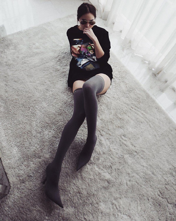 โดยทั้งคู่มาในเสื้อผ้าต่างสไตล์ แต่สวมใส่รองเท้าบูทยาวดีไซน์เก๋ของแบรนด์ Balenciaga เหมือนกันต่างกันแค่สีเท่านั้น งานนี้ต้องบอกว่า เก๋กันไปคนละแบบ อย่าง สาวชมพู่ ก็มีรองเท้าบูทในคอลเลคชั่นนี้อยู่หลายคู่หลากสีและเมื่อหยิบออกมาใส่ทีไรไม่ว่าจะเป็นสีไหนก็เป๊ะปังอยู่ตลอด ส่วน สาวเจนี่ ที่ปกติชอบใส่บูทยาวอยู่แล้ว เมื่อมาใส่สไตล์นี้ก็ยังสวยเริดเหมือนเดิม