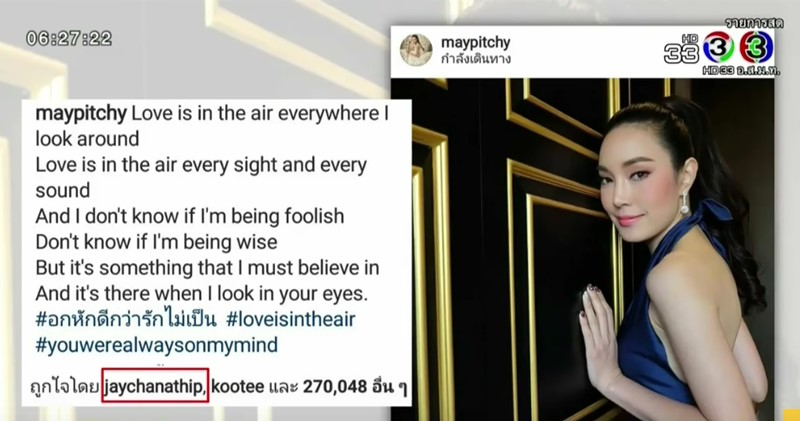 เมย์ พิชญ์นาฏ โพสต์ IG อกหักดีกว่ารักไม่เป็น หลังบอบช้ำจากความรัก เพราะครอบครัวฝ่ายชายไม่ปลื้ม ด้าน เจ ชนาธิป โผล่กดไลค์ เรียกว่าบอบช้ำจากความรักครั้งนี้หนักมาก สำหรับนักแสดงสาว