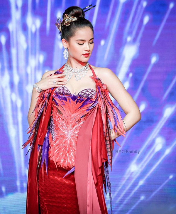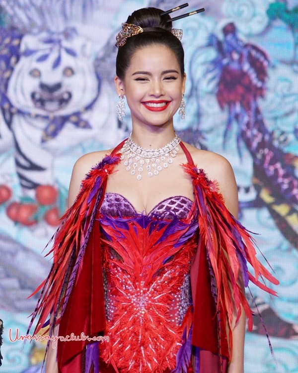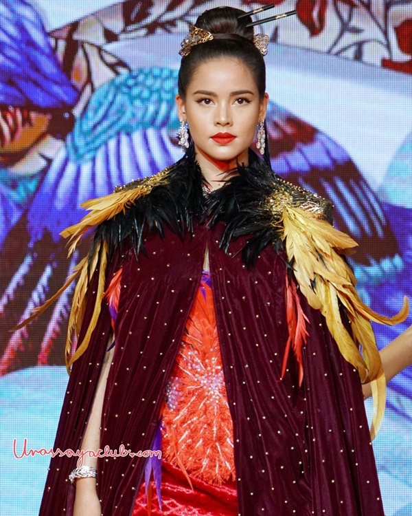 โดยงานนี้สาว ญาญ่า อุรัสยา ปรากฏตัวอย่างโดดเด่นในชุดคลุมดูลึกลับ ก่อนเผยให้เห็นชุดด้านในสุดอลัง เน้นโทนสีแดง ตกแต่งด้วยขนนก เผยเนินอกและช่วงไหล่ที่ขาว เนียน สวยสะกด จนเห็นแล้วแทบจะละสายตาไม่ได้เลยทีเดียว